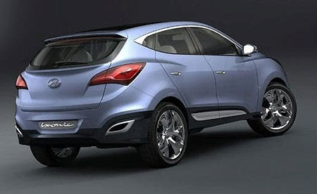 The concept car you see here will toned down (especially the aggressive front bumper) for production as the replacement model for the next generation Hyundai Tucson SUV, or rather its expected new name, the Hyundai ix35. At the moment, it’s called the Hyundai HED-6 ix-ONIC concept, one that seats 5 and measures 4400mm long, 1850mm wide and 1650mm high. The production car will be assembled in Slovakia next to the 2010 Kia Sportage, a vehicle which it shares a platform and a majority of technical components with. The Sportage is expected to be out in February 2010, but no release date was indicated for the Tucson/ix35. Look after the jump for a rear view of the car.